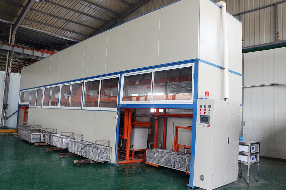 主要加工和檢測設(shè)備——翅片成型機(jī)、全自動超聲波清洗線、高溫合金釬焊夾具、芯體裝配機(jī)、真空釬焊爐、數(shù)控激光切割機(jī)、數(shù)控剪板機(jī)、折彎機(jī)、沖床、鉆床、搖臂鉆床、鋸床、點(diǎn)焊機(jī)、全自動氬弧焊機(jī)、散熱器試漏機(jī)器、散熱器壓力試驗(yàn)機(jī)等,