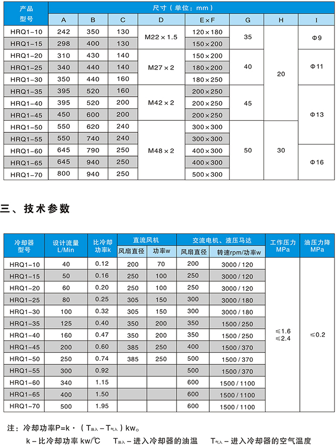 該系列油冷卻器通常由鋁板翅式換熱器、冷卻風(fēng)扇、風(fēng)扇驅(qū)動(dòng)裝置及輔助元件組成。其中,風(fēng)扇驅(qū)動(dòng)裝置有交流電機(jī)、直流電機(jī)和液壓馬達(dá)三種方式可供選擇:在固定場合使用時(shí),應(yīng)盡量選用交流電機(jī);在車輛或移動(dòng)設(shè)備上使用時(shí)應(yīng)盡量選用直流電機(jī),當(dāng)無直流電源或直流電源不足以驅(qū)動(dòng)風(fēng)扇時(shí),則可考慮選用液壓馬達(dá)作為風(fēng)扇動(dòng)力。與水冷式油冷卻器相比,該類油冷卻器具有使用方便可靠、無排放物處理、運(yùn)行成本低和壽命長久等顯著優(yōu)點(diǎn),可用于所有對(duì)鋁無腐蝕液體的冷卻,如:液壓、液力傳動(dòng)系統(tǒng)的冷卻、潤滑系統(tǒng)的冷卻等。